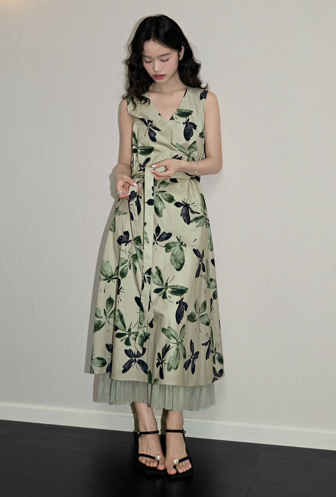 印花无袖背心裙无疑是背心裙最亮眼的一颗星。它不仅浪漫而且轻盈优雅,轻松将女性的温婉与柔美展现得淋漓尽致。